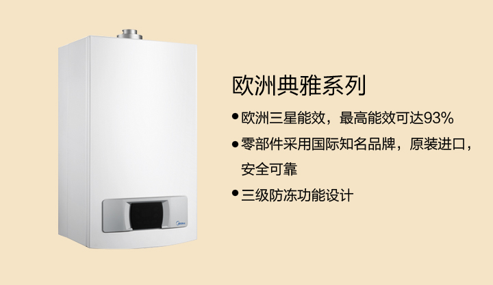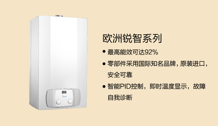美的燃气采暖热水炉欧洲设计,原装进口,外观简约俊朗,时尚高雅,非凡欧洲技术,科技与时尚完美结合,24重安全防护功能时刻呵护全家,不仅仅给您温暖,还能给您美的体验。